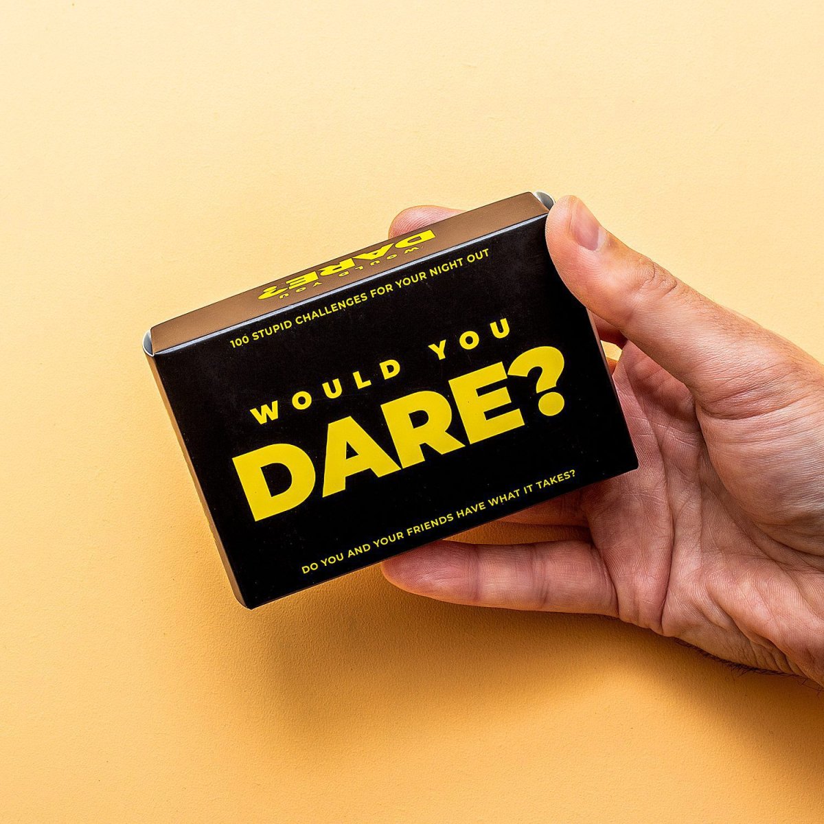 Durf jij een selfie te maken met iemand die je zomaar tegenkomt op straat? Of een minuut lang een striptease uitvoeren? De Would You Dare uitdagingen van Gift Republic geven je honderd hilarische uitdagingen. Durf jij ze allemaal uit te voeren? Neem de set kaarten mee op vakantie en gebruik ze tijdens een avond uit: daar kent toch niemand je.