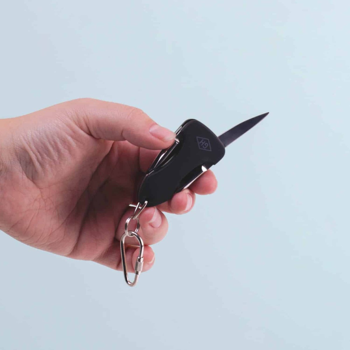 Een handige multitool voor onderweg, met onder andere een zaklamp en mesje. Daarnaast bevat de multitool schroevendraaiers en een flesopener. Met de karabijnhaak hang je hem makkelijk aan je tas, broek of sleutelbos, zodat je de multitool altijd bij je hebt.