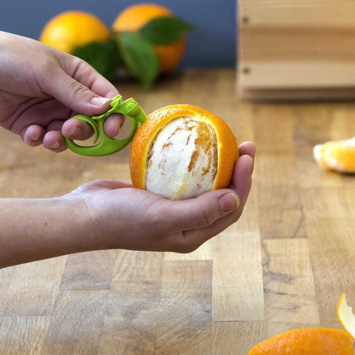 Hoe rasp je de schil van een citrusvrucht? Dat kan met verschillende tools, maar de Zesty fruitrasp en -schiller van Peleg Design is de leukste van allemaal. Deze fruitrasp en -schiller in één en ziet eruit als een kameleon. Met dit groene diertje rasp jij zo de buitenste laag van bijvoorbeeld een limoen of citroen af. Bij het raspen van fruit gaat het erom dat je alleen de buitenste laag, dus de gekleurde laag van de citrusvrucht, eraf raspt. De kameleon weet precies hoe hij dit voor jou moet doen. De schil kun je gebruiken om te bakken, koken of voor in een cocktail.