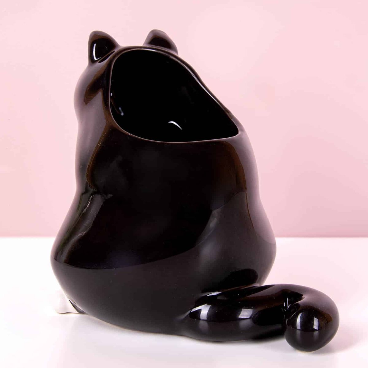 De Zwarte kat vaas van Bitten is er voor iedereen die van katten houdt én van bloemen. Deze grappige vaas lijkt op een kat en kijkt nieuwsgierig naar je bloemen, maar we beloven dat ze ze niet op zal eten. Deze vaas is een echte eyecatcher in je interieur, zelfs zonder bloemen. Maar met een bloemenkroon ziet ze er nog schattiger uit.